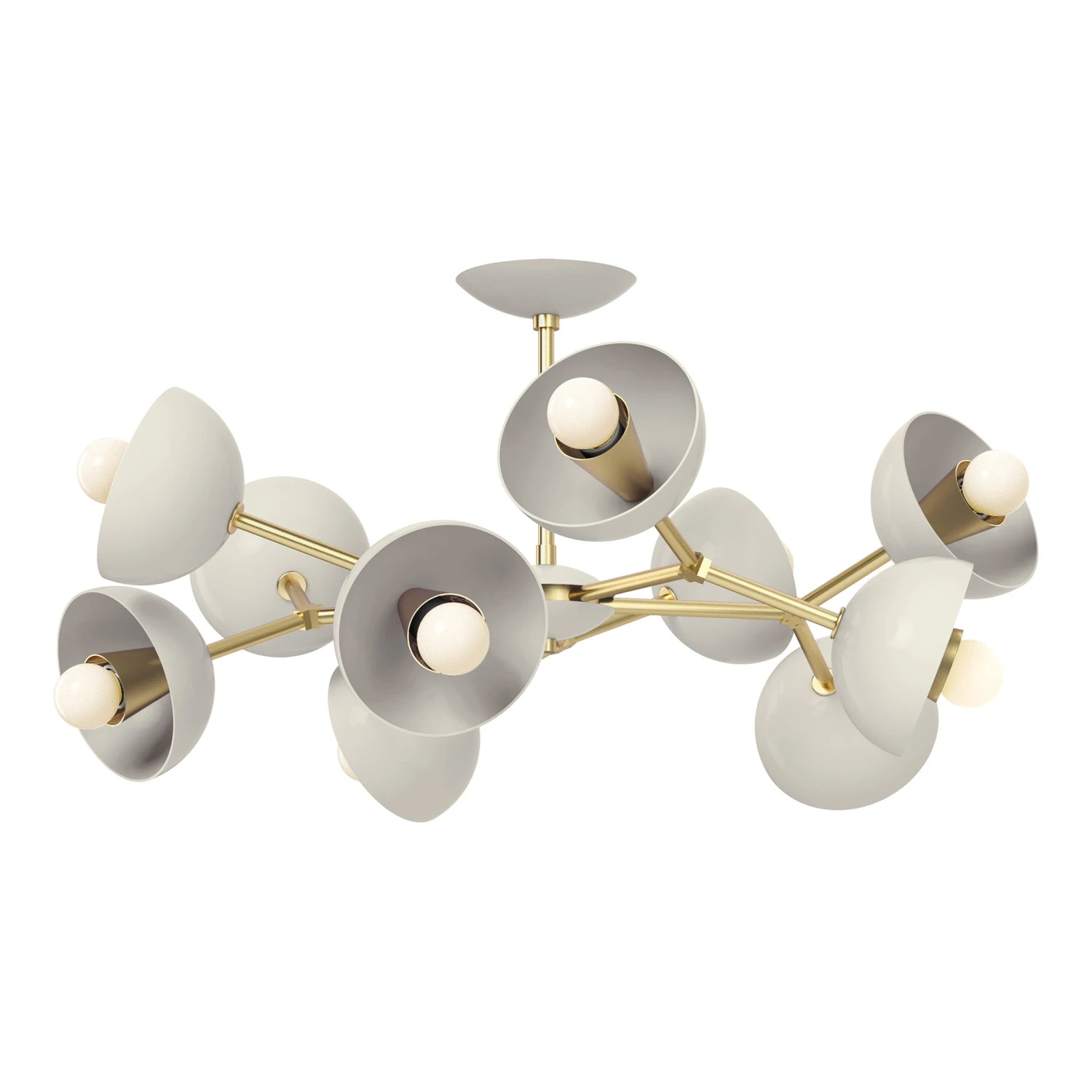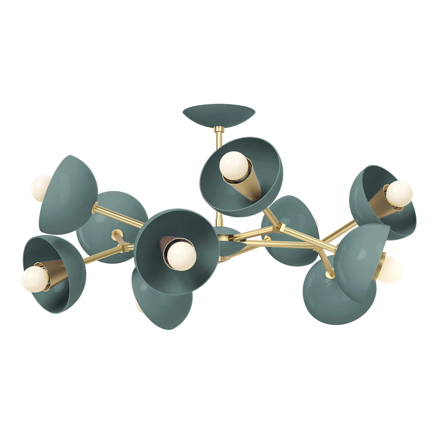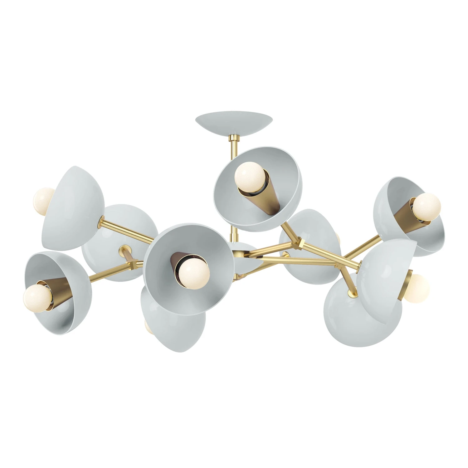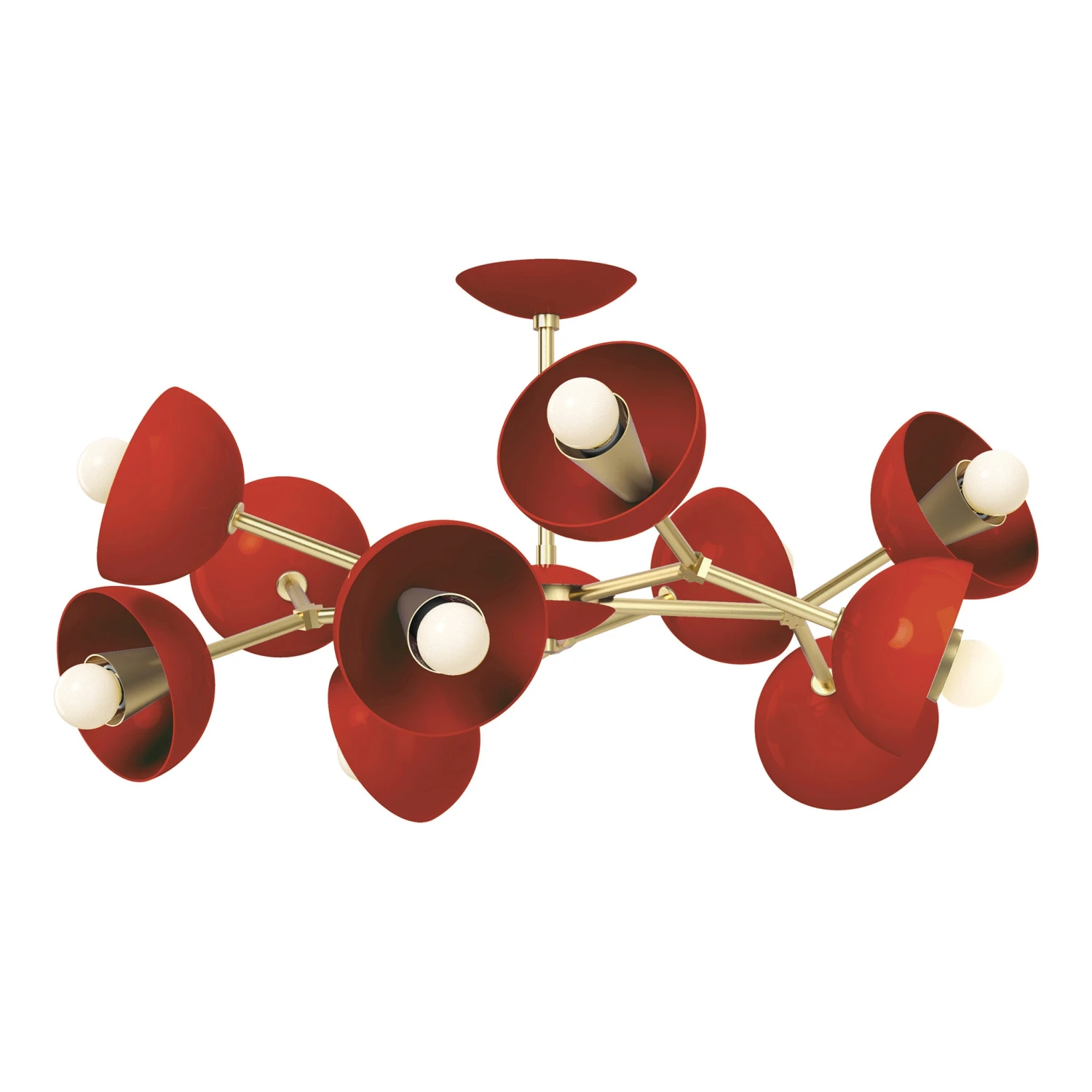 The Color Alegria Flush Mount is a geometric wheel of colorful shades. Each fixture is made-to-order using exclusively designed solid brass parts and has 10 shades which can be personalized with colors ranging from soft to bold. This fixture is perfect for the space with lower ceilings looking for a statement piece.