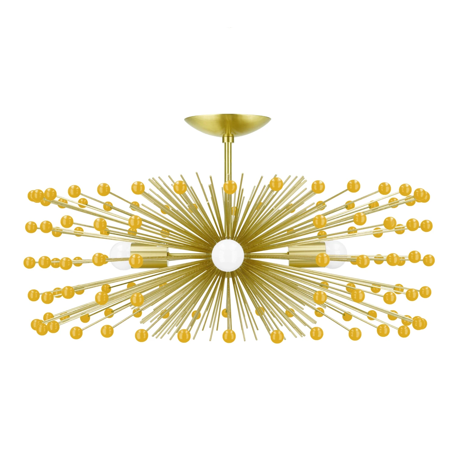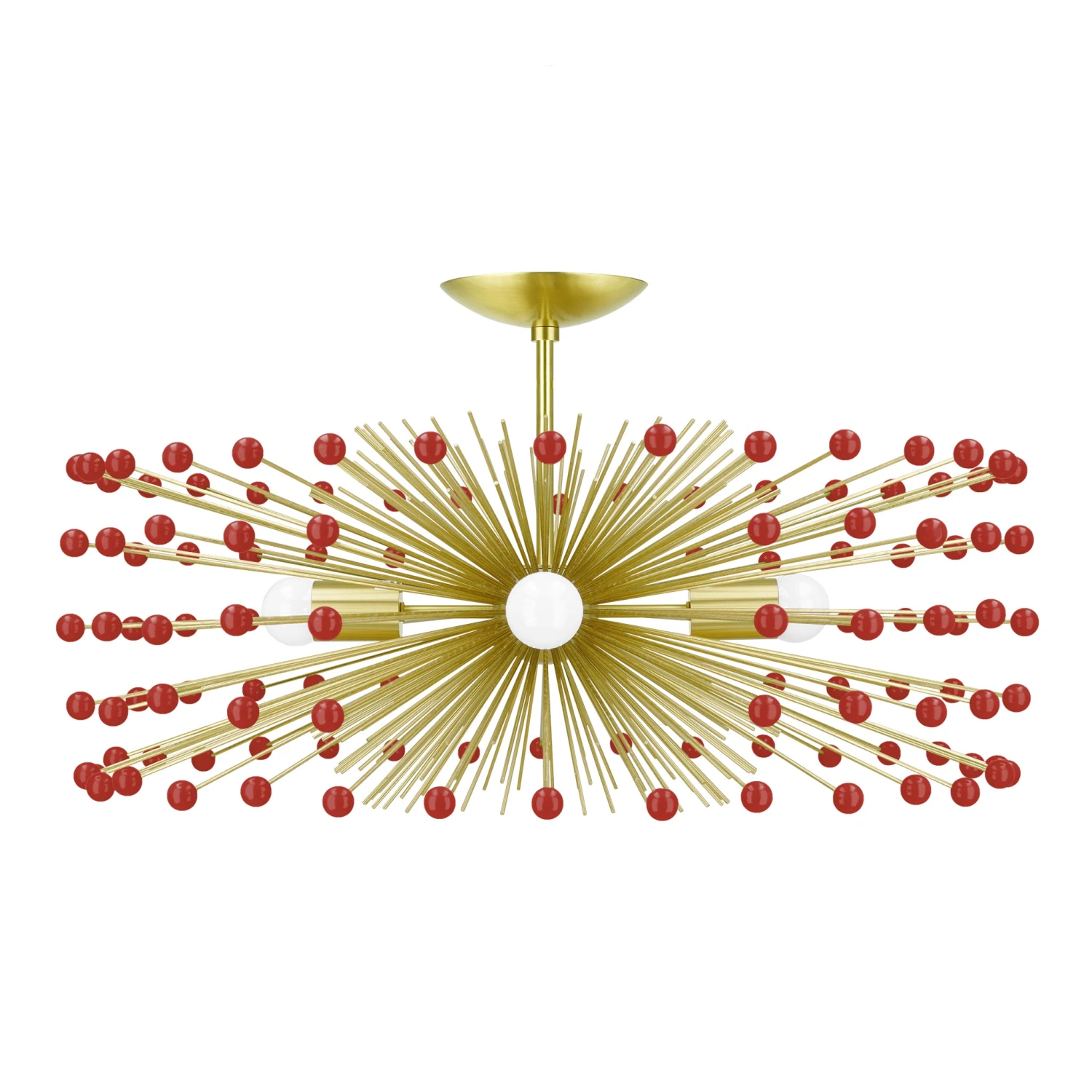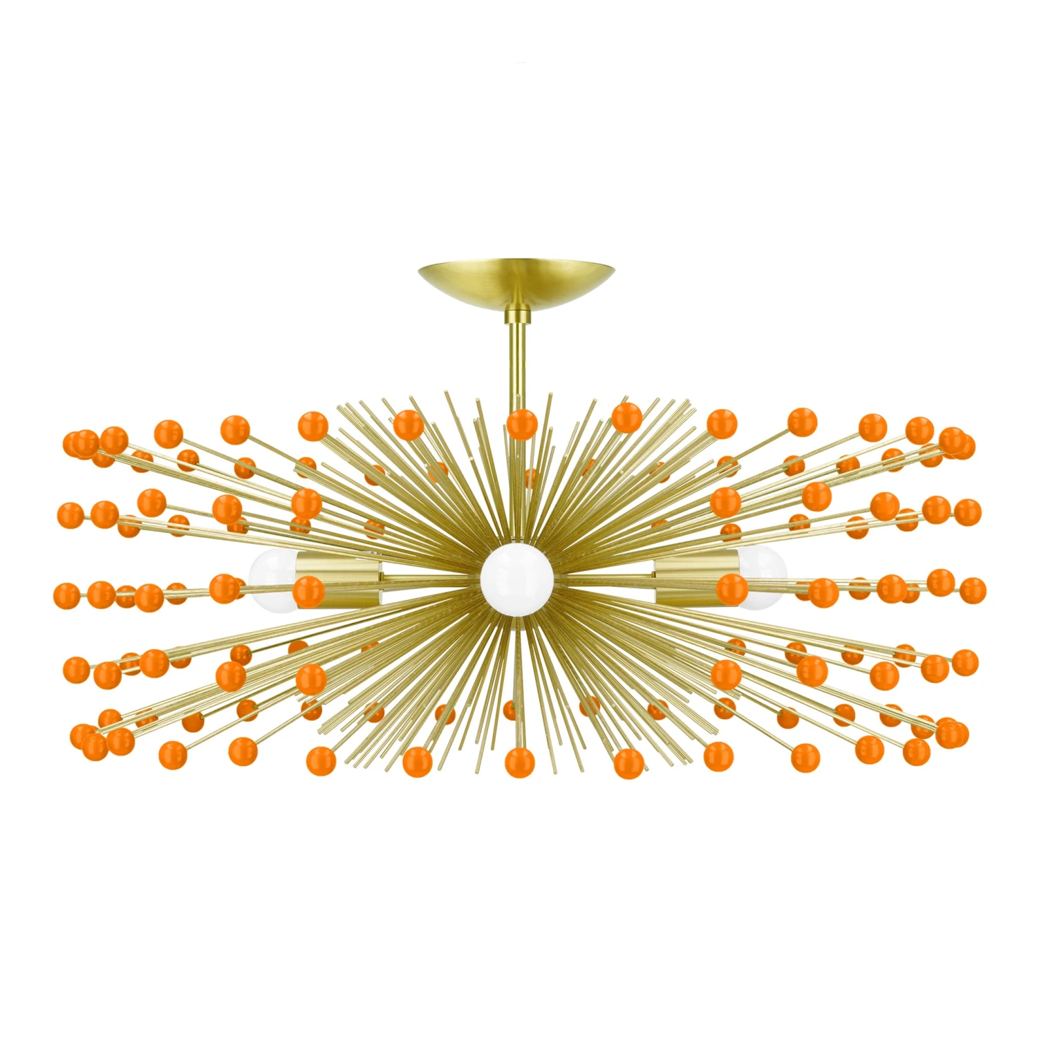 Our color beaded “urchin” is the ultimate combination of captivating design and colorful charm. Each flush mount is built on a CNC-machined aluminum core adorned with 316 individually threaded solid brass rods. What makes this fixture special though are its 124 colorful beads, all powder coated here in-house, that create an explosive supernova effect. Choose from our array of colors or a custom color and learn why our customers oft call this “my urchin”.