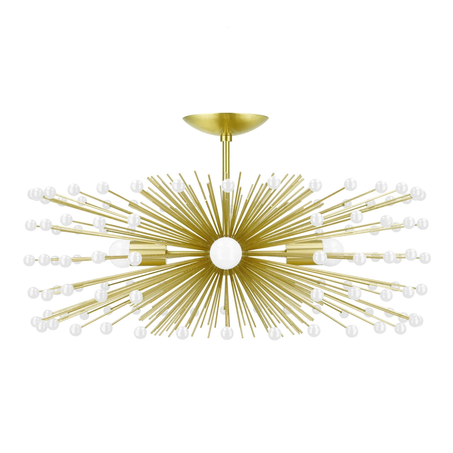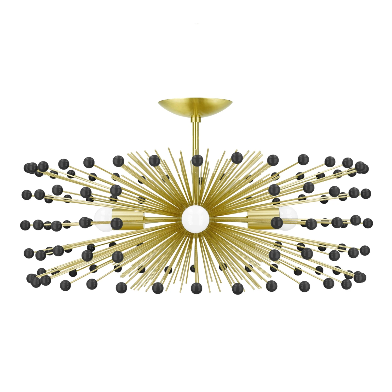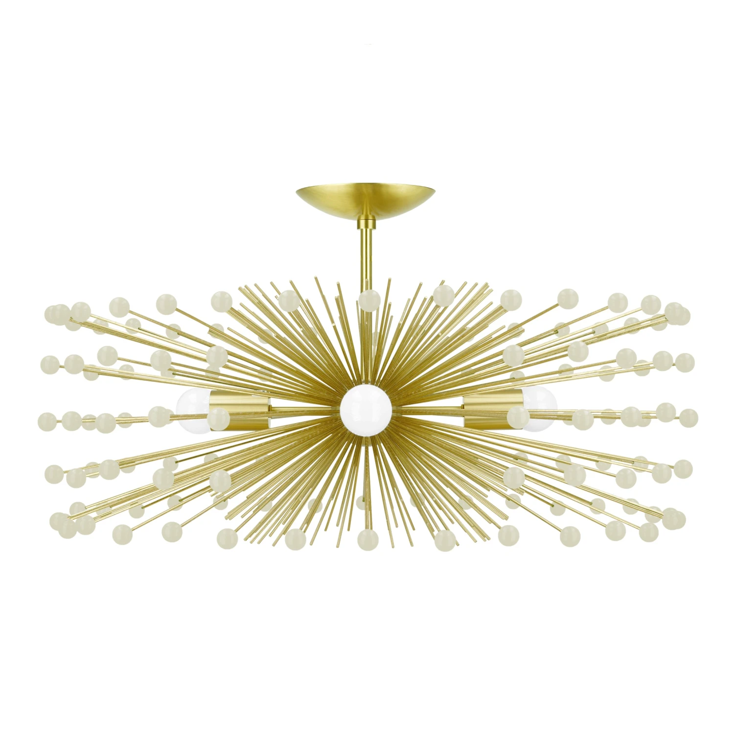 Our color beaded “urchin” is the ultimate combination of captivating design and colorful charm. Each flush mount is built on a CNC-machined aluminum core adorned with 316 individually threaded solid brass rods. What makes this fixture special though are its 124 colorful beads, all powder coated here in-house, that create an explosive supernova effect. Choose from our array of colors or a custom color and learn why our customers oft call this “my urchin”.