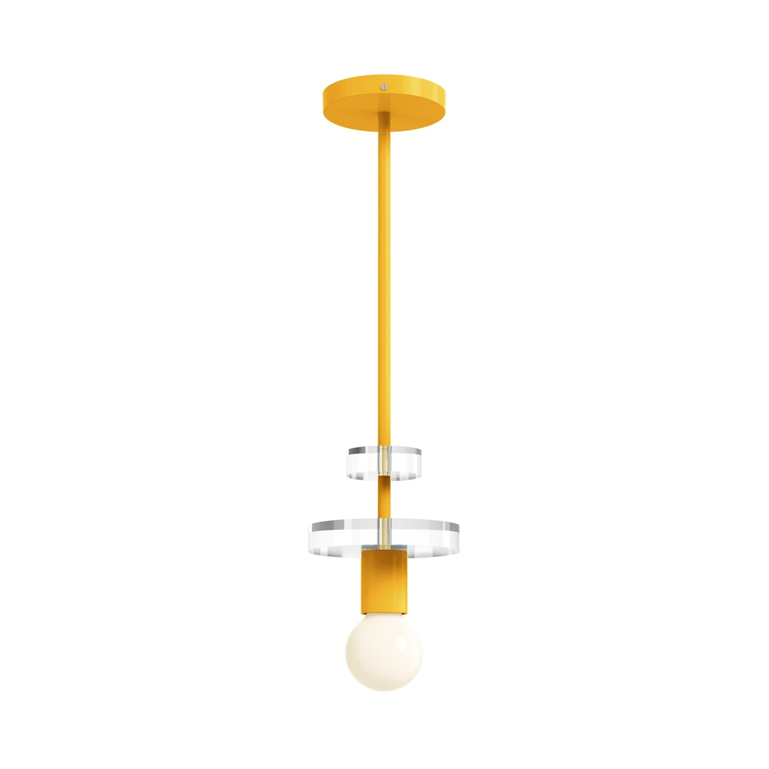 The Bling Pendant is a sleek, modern lighting option that couples high-end metals with captivating reflective acrylic. Each pendant is constructed using solid brass with integrated high-clarify acrylic discs. Install one of these pendants alone or in groups of two or more to create an impactful modern statement above a kitchen island, bar, or down a long hallway.