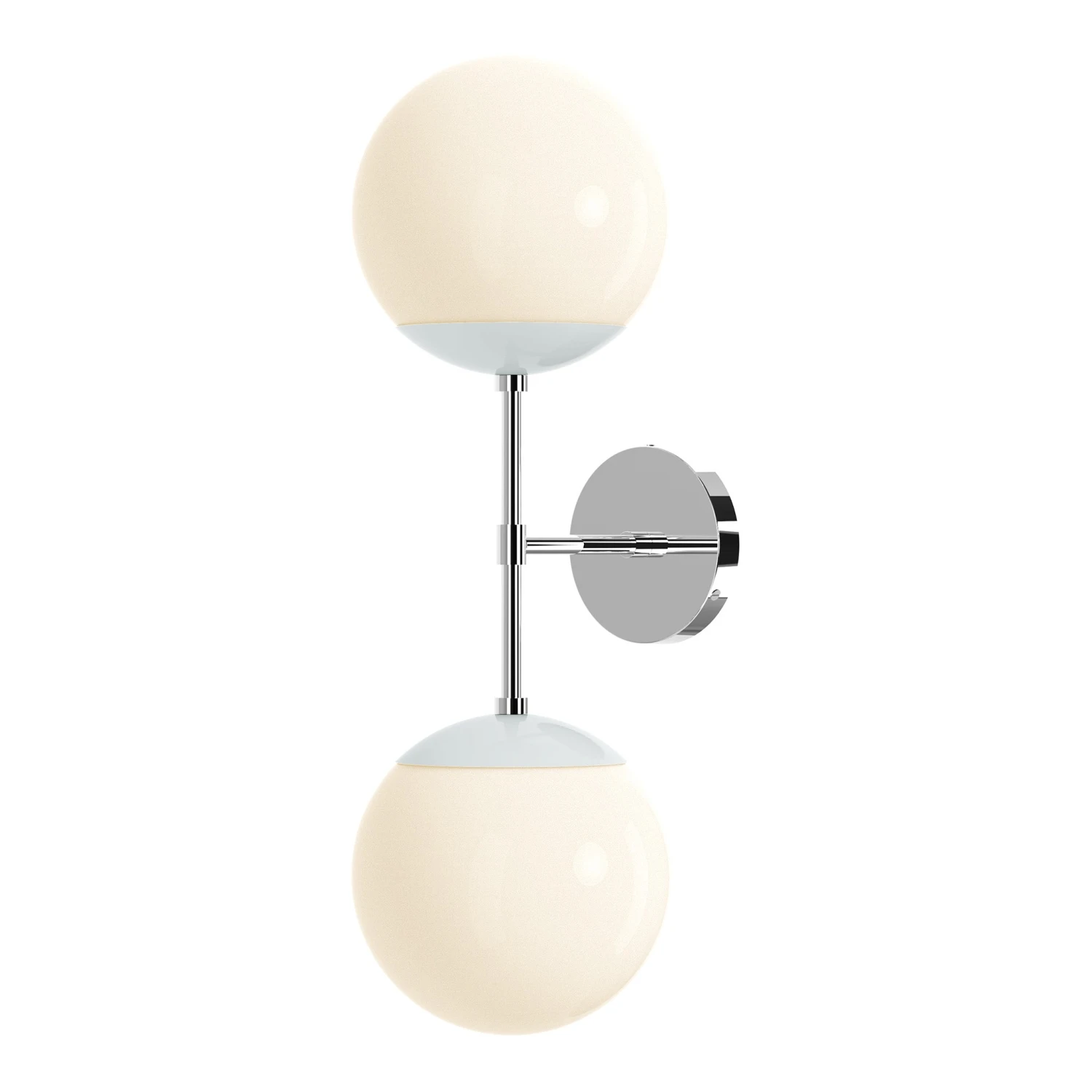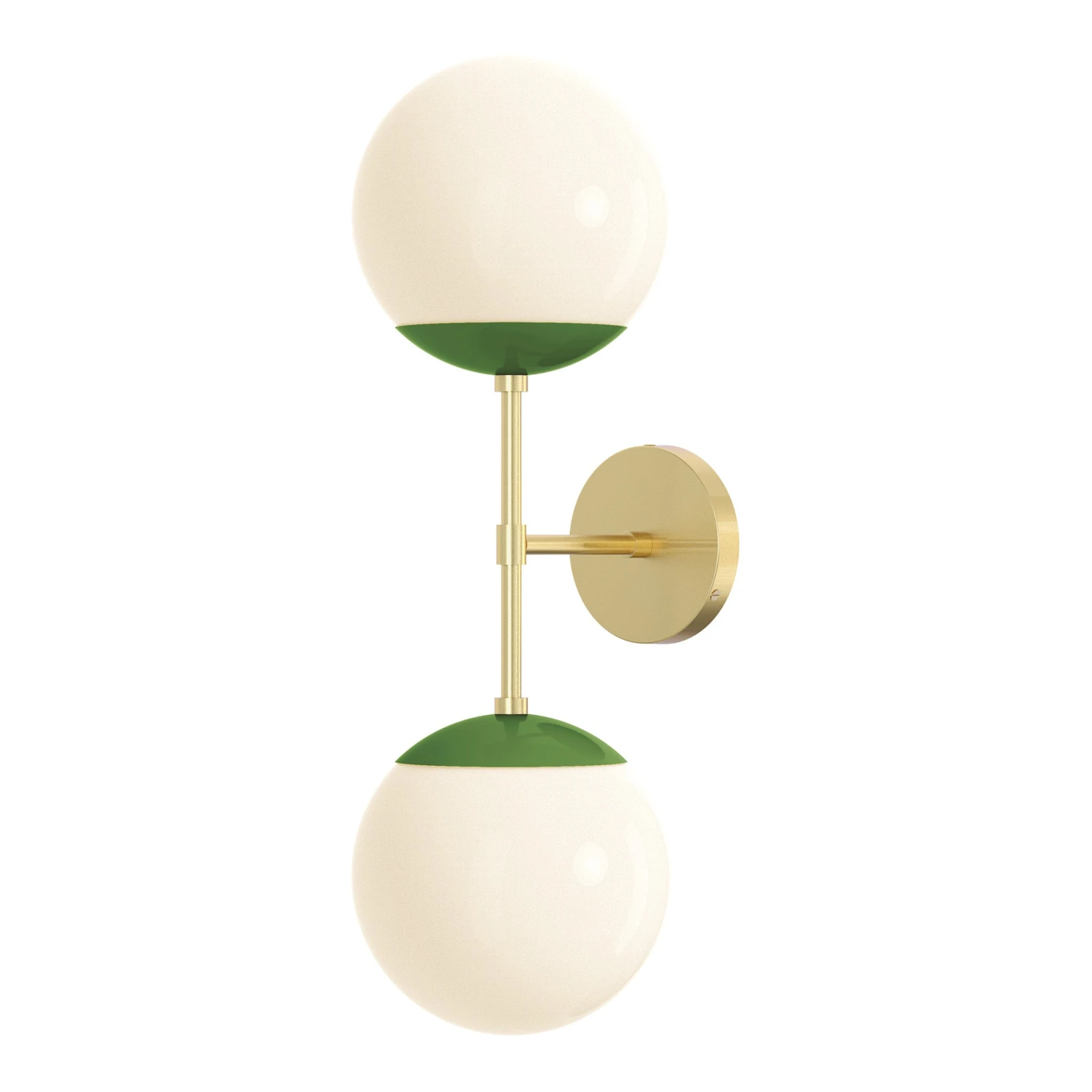 The Color Cap Double Sconce 8″ is a simple, luxe wall sconce designed to be a fun, personalizable lighting option that works well as both general and decorative lighting. The fixture can be positioned vertically or horizontally to flank an object or float above any space.