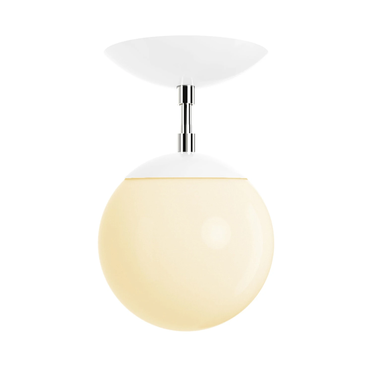 The Color Cap Globe Flush Mount 6″ is our smallest globe light fixture. This fixture works well in spaces ranging from traditional to mid-century modern. Built to hug the ceiling, try one or more of these light fixtures in areas with low ceilings or high swinging doors.