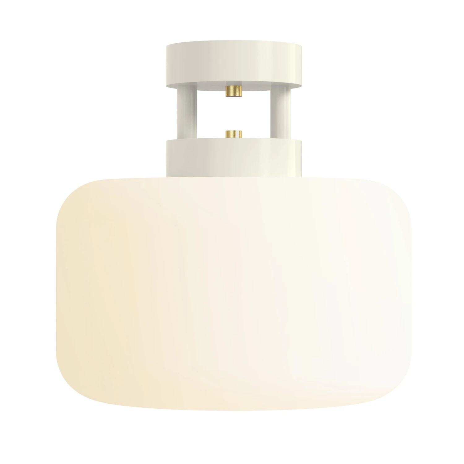 The fixture features a unique, filleted-edge matte glass drum shade perfect for diffused general lighting. The fixture is built with an UNO thread, so if you ever decided you wanted another shade, then you can easily swap it out. It’s a great lighting option in low foyers, low hallways, low closets, and above high swinging doors.