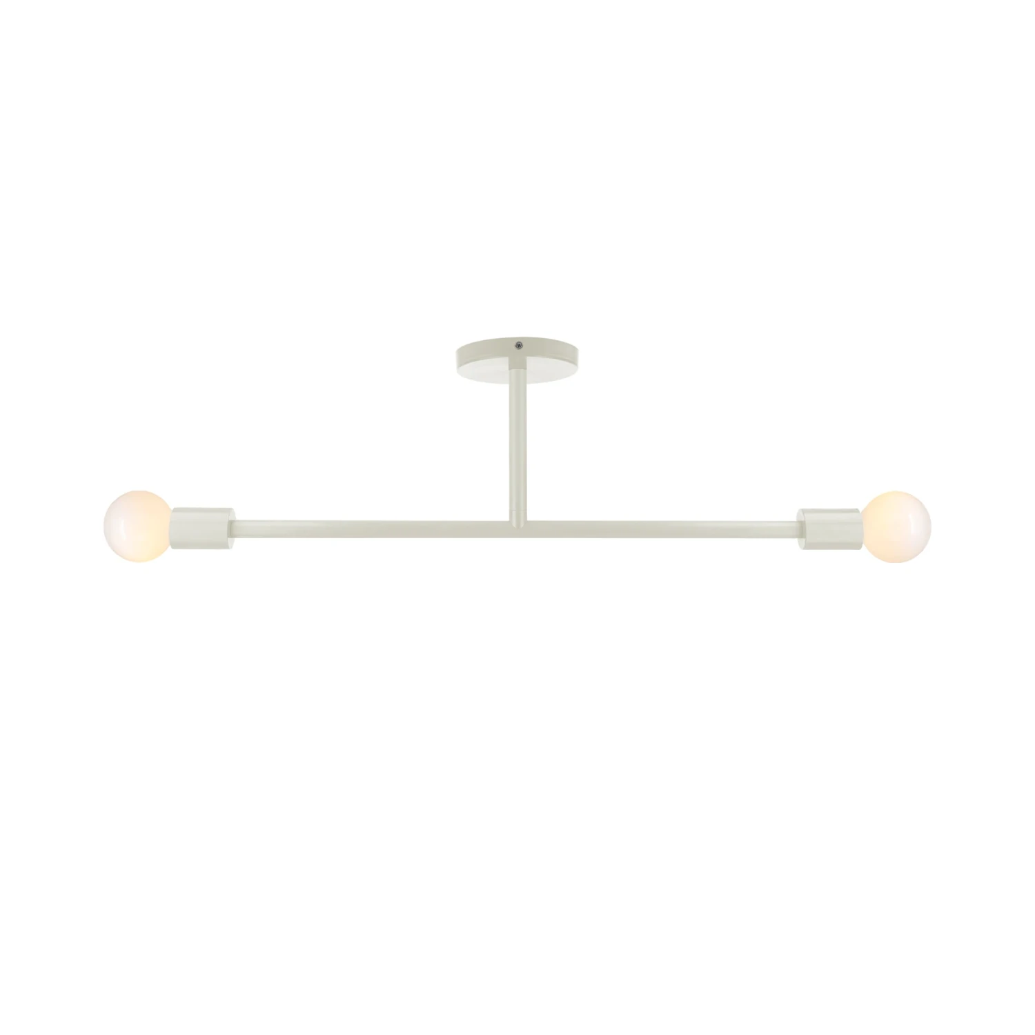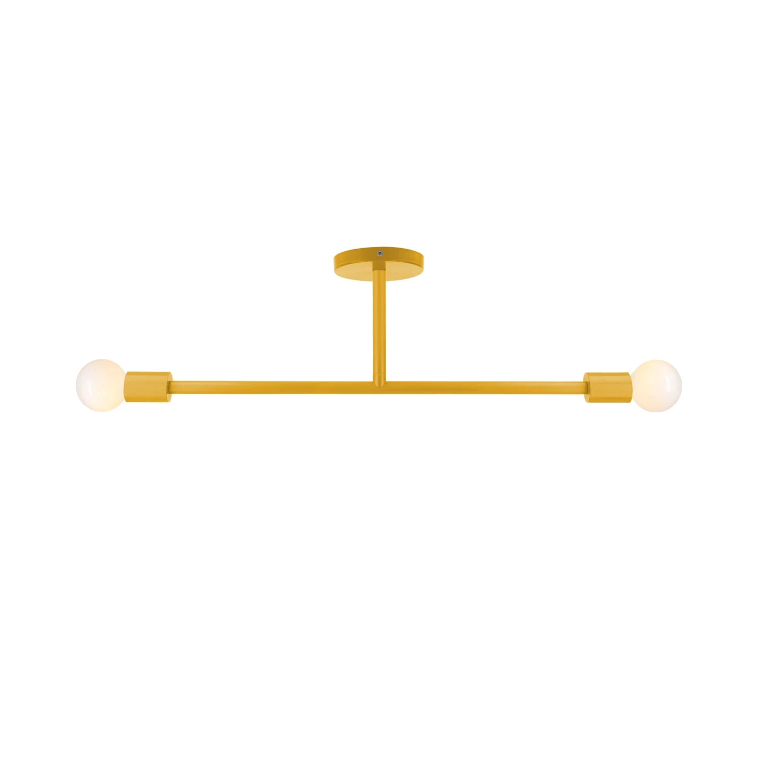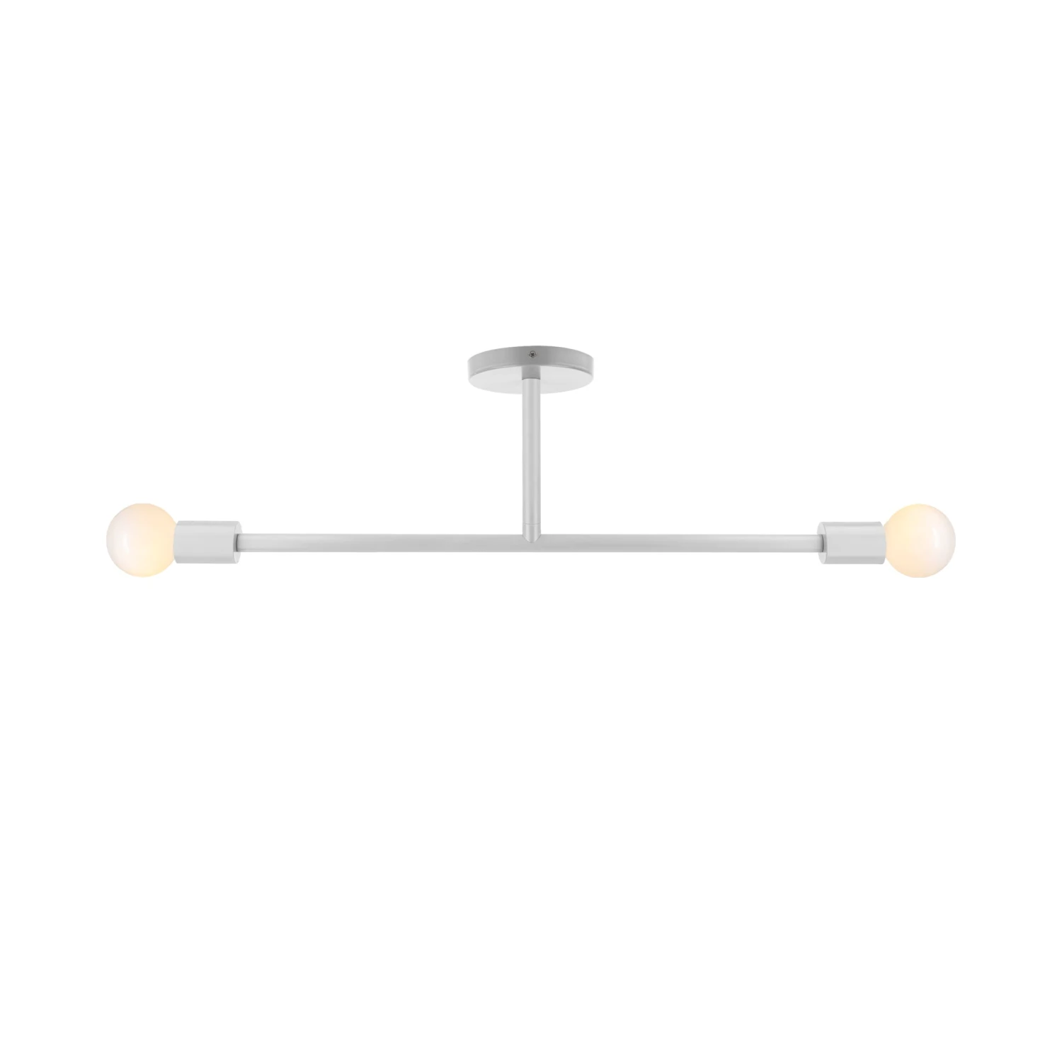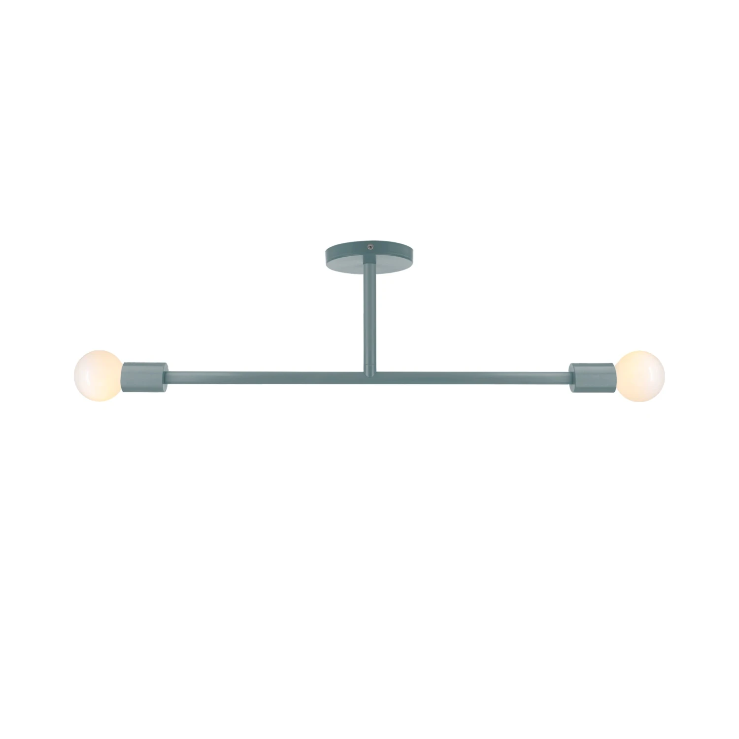 This simple, modern flush mount offers a T-shaped silhouette energized by colorful powder coat options. Each fixture features two exposed bulbs on an expansive tier crafted from exclusively-designed aluminum parts. Perfect for use above long, narrow islands and tables and hallways, the fixture also creates impactful perpendicular and parallel formations when used in groups.