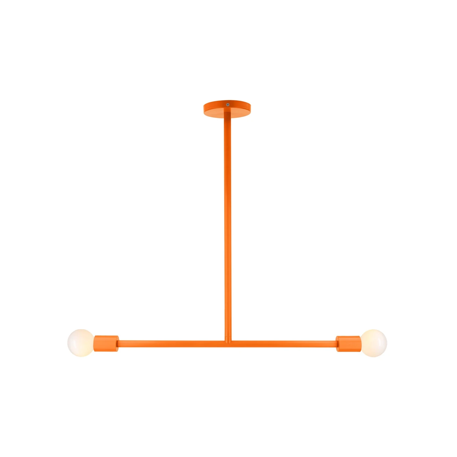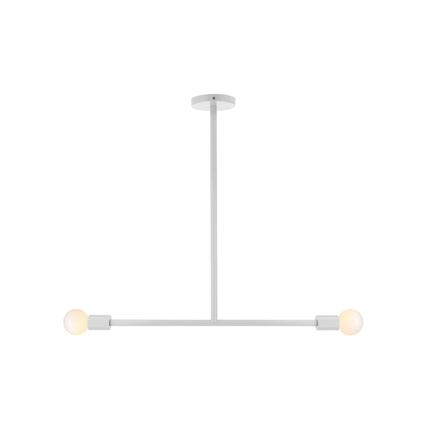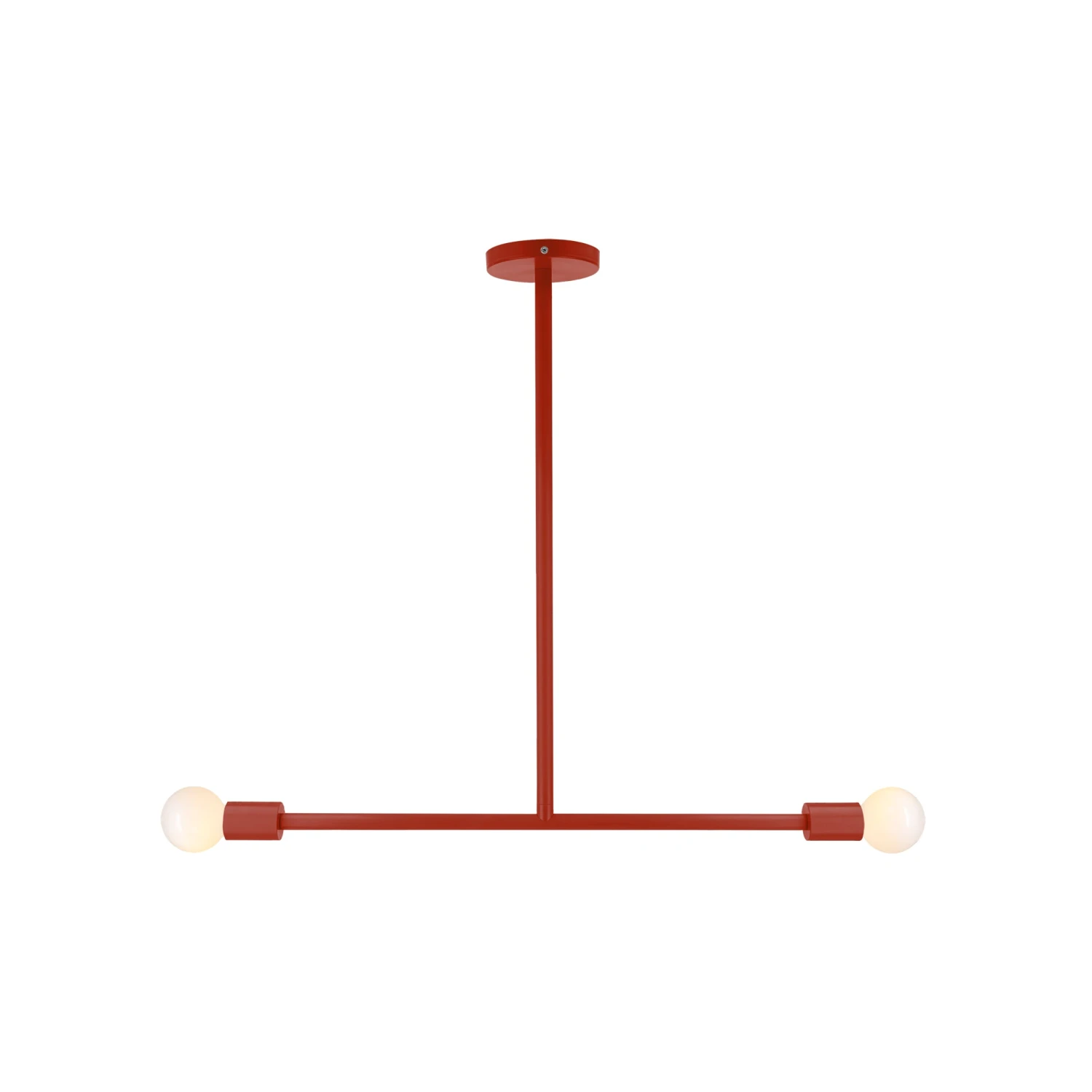 This simple, modern pendant offers a T-shaped silhouette energized by colorful powder coat options. Each fixture features two exposed bulbs on an expansive tier crafted from exclusively-designed aluminum parts. Perfect for use above long, narrow islands and tables and hallways, the fixture also creates impactful perpendicular and parallel formations when used in groups.