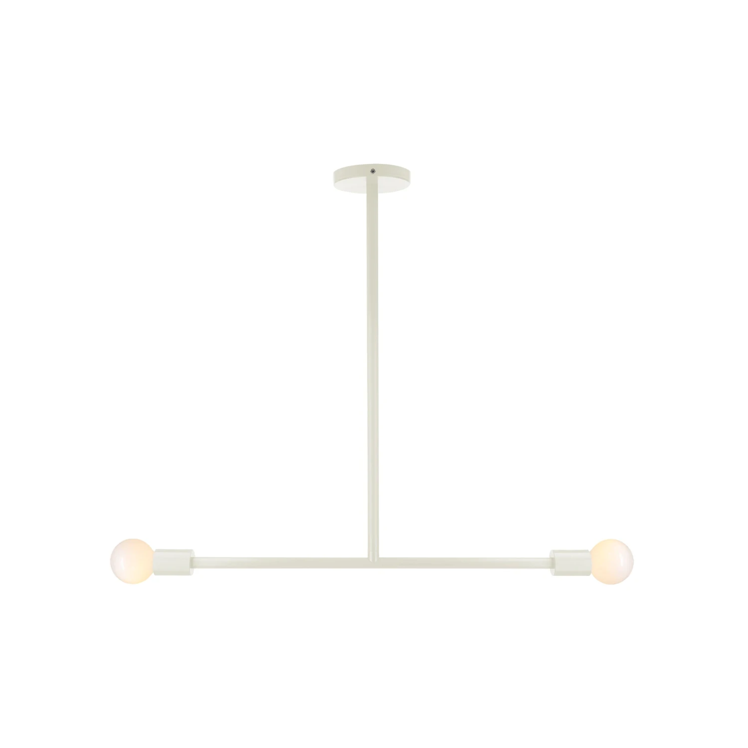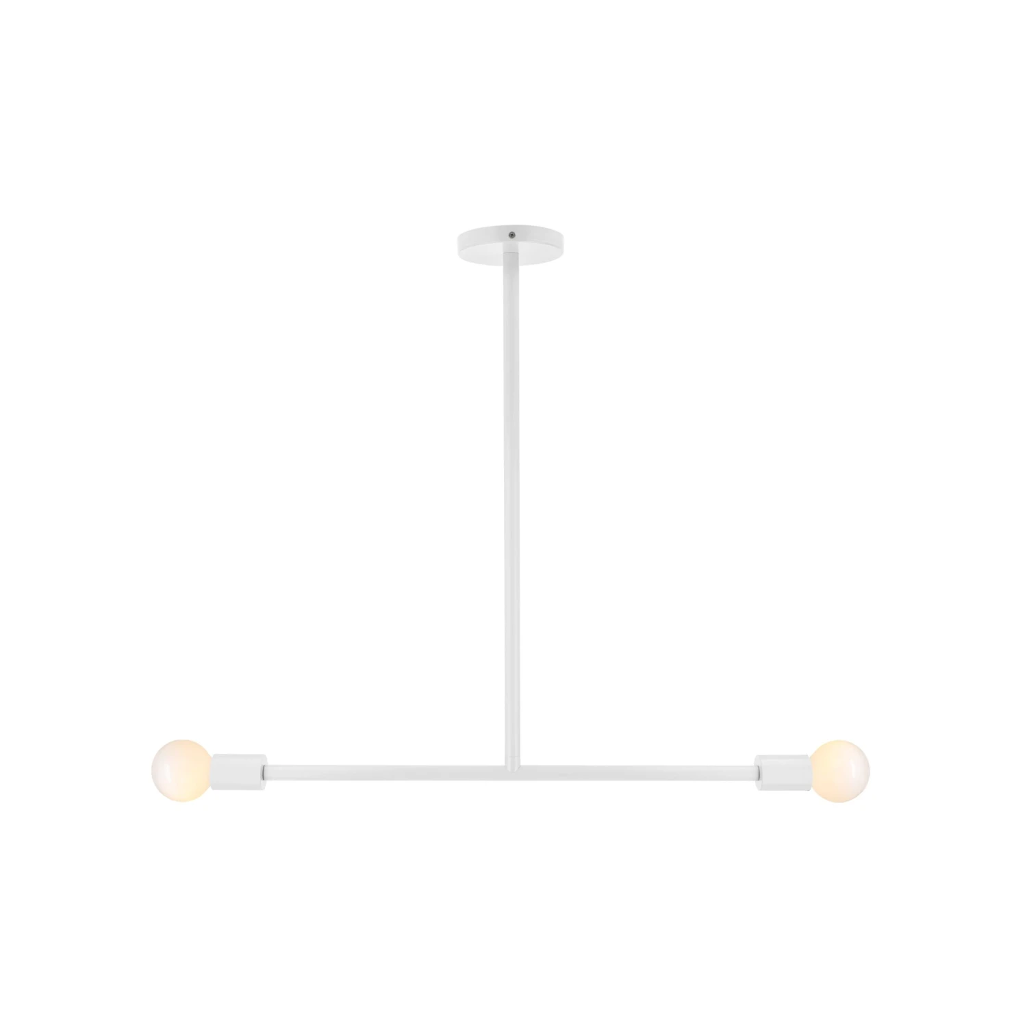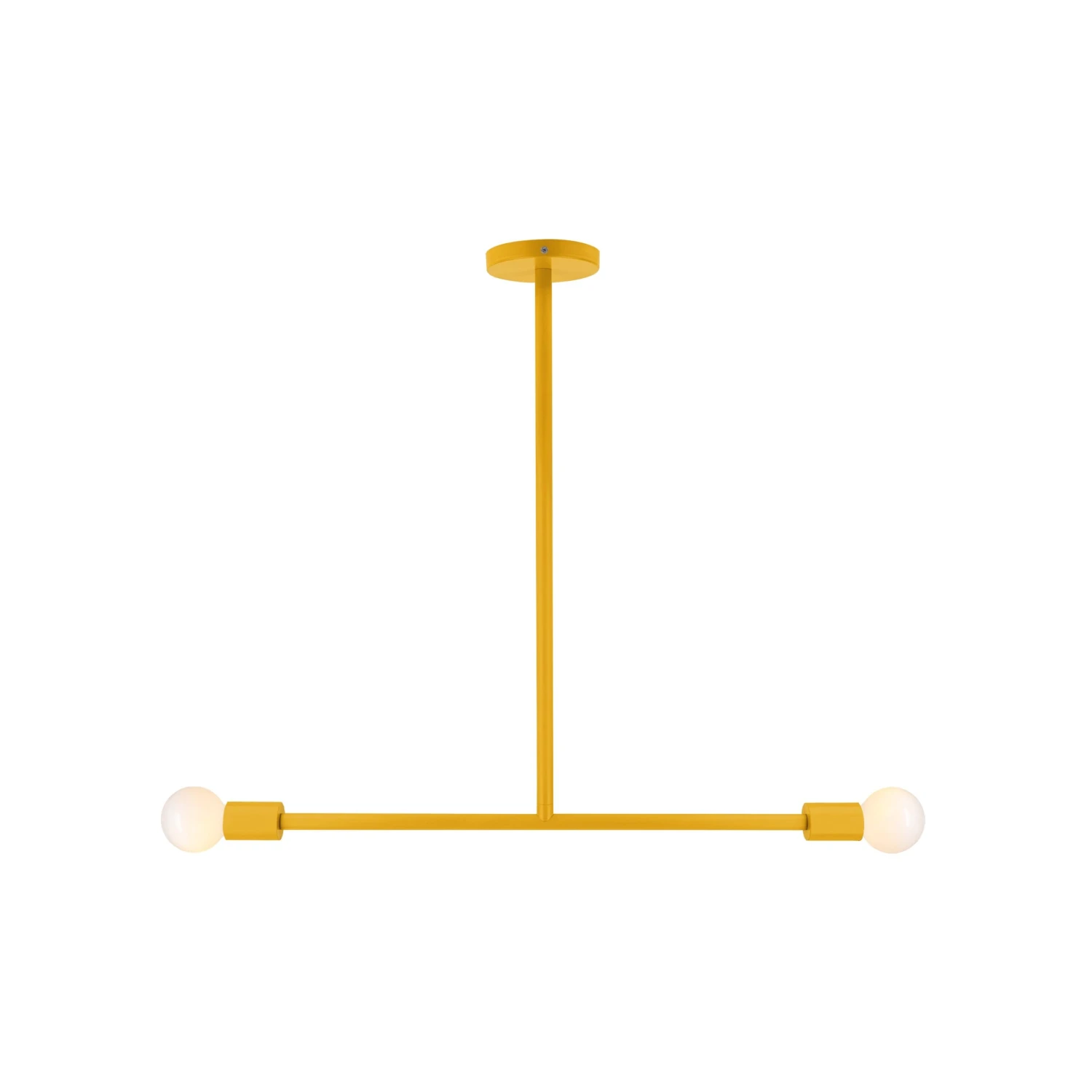 This simple, modern pendant offers a T-shaped silhouette energized by colorful powder coat options. Each fixture features two exposed bulbs on an expansive tier crafted from exclusively-designed aluminum parts. Perfect for use above long, narrow islands and tables and hallways, the fixture also creates impactful perpendicular and parallel formations when used in groups.