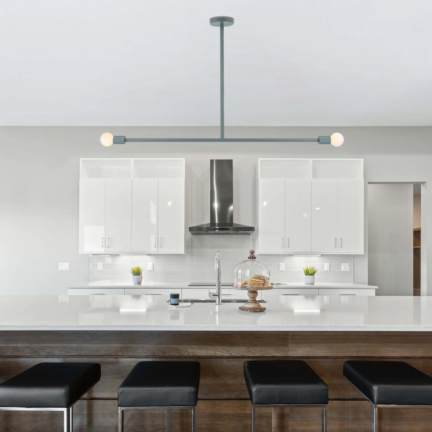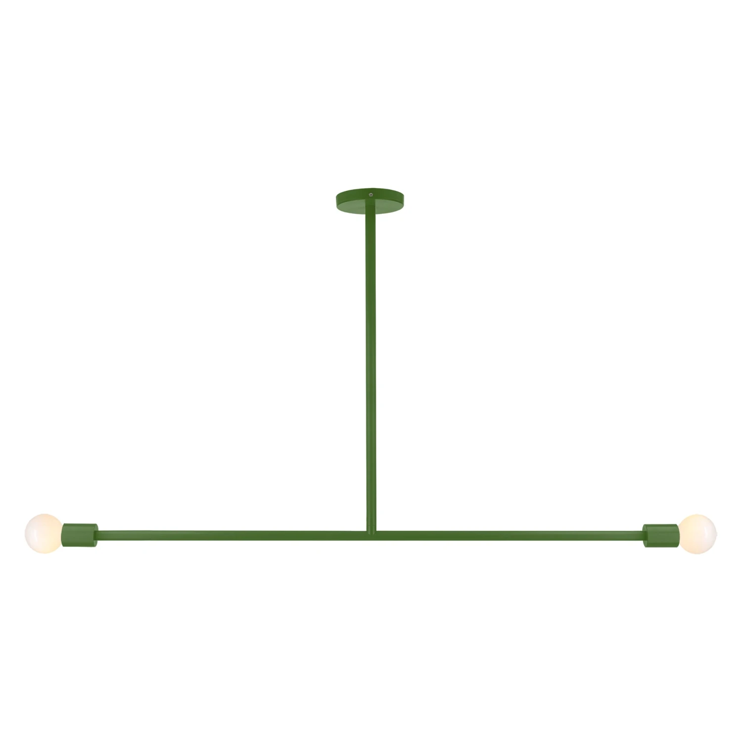 This simple, modern pendant offers a T-shaped silhouette energized by colorful powder coat options. Each fixture features two exposed bulbs on an expansive tier crafted from exclusively-designed aluminum parts. Perfect for use above long, narrow islands and tables and hallways, the fixture also creates impactful perpendicular and parallel formations when used in groups.