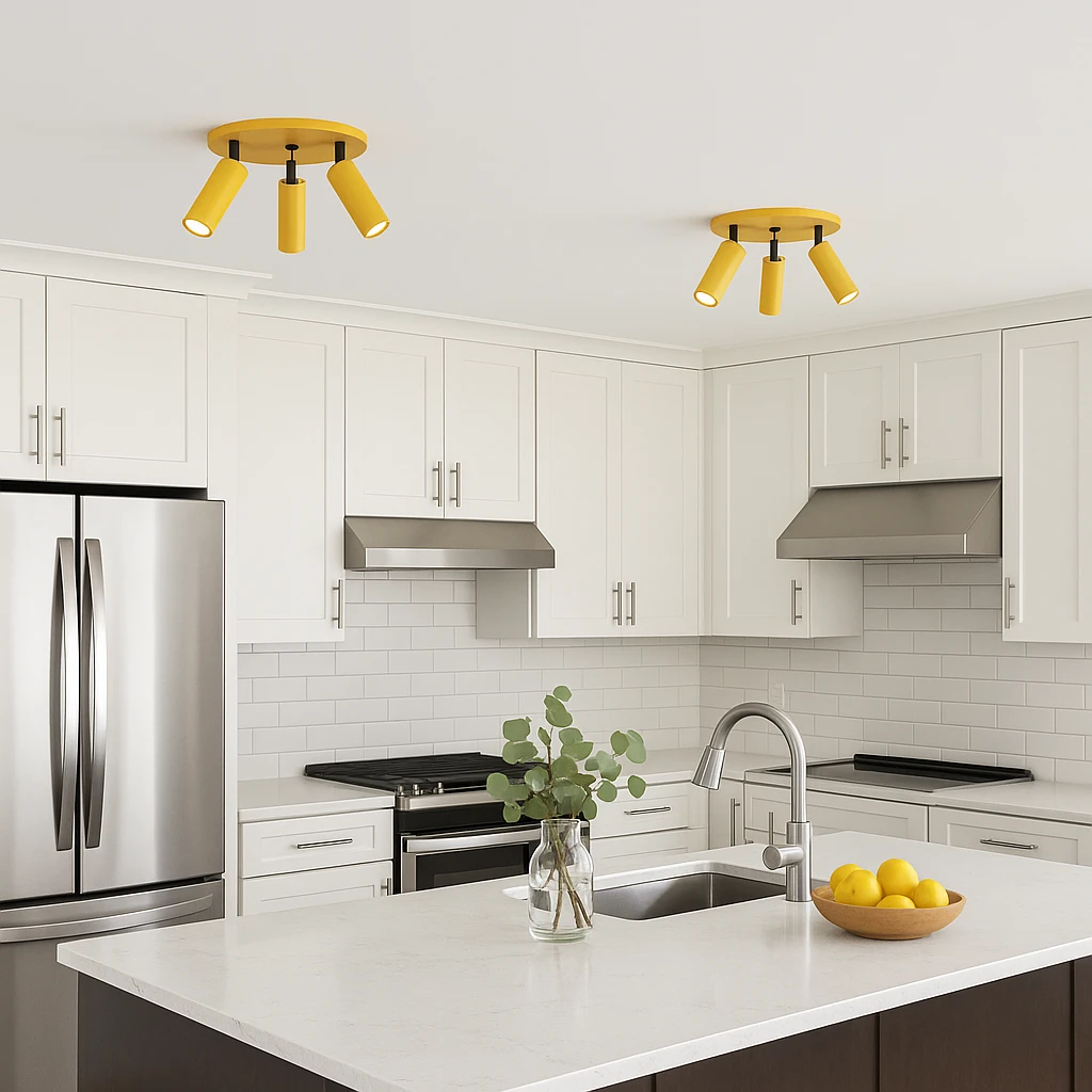 The Color Pose Flush Mount is a colorful alternative to track lighting. Each fixture is configured with adjustable swivel joints so that its arms so its light can be directed as you please. This colorful flush mount is designed to be compact and thus perfect to install in rooms with lower ceilings or high-swinging doors.
