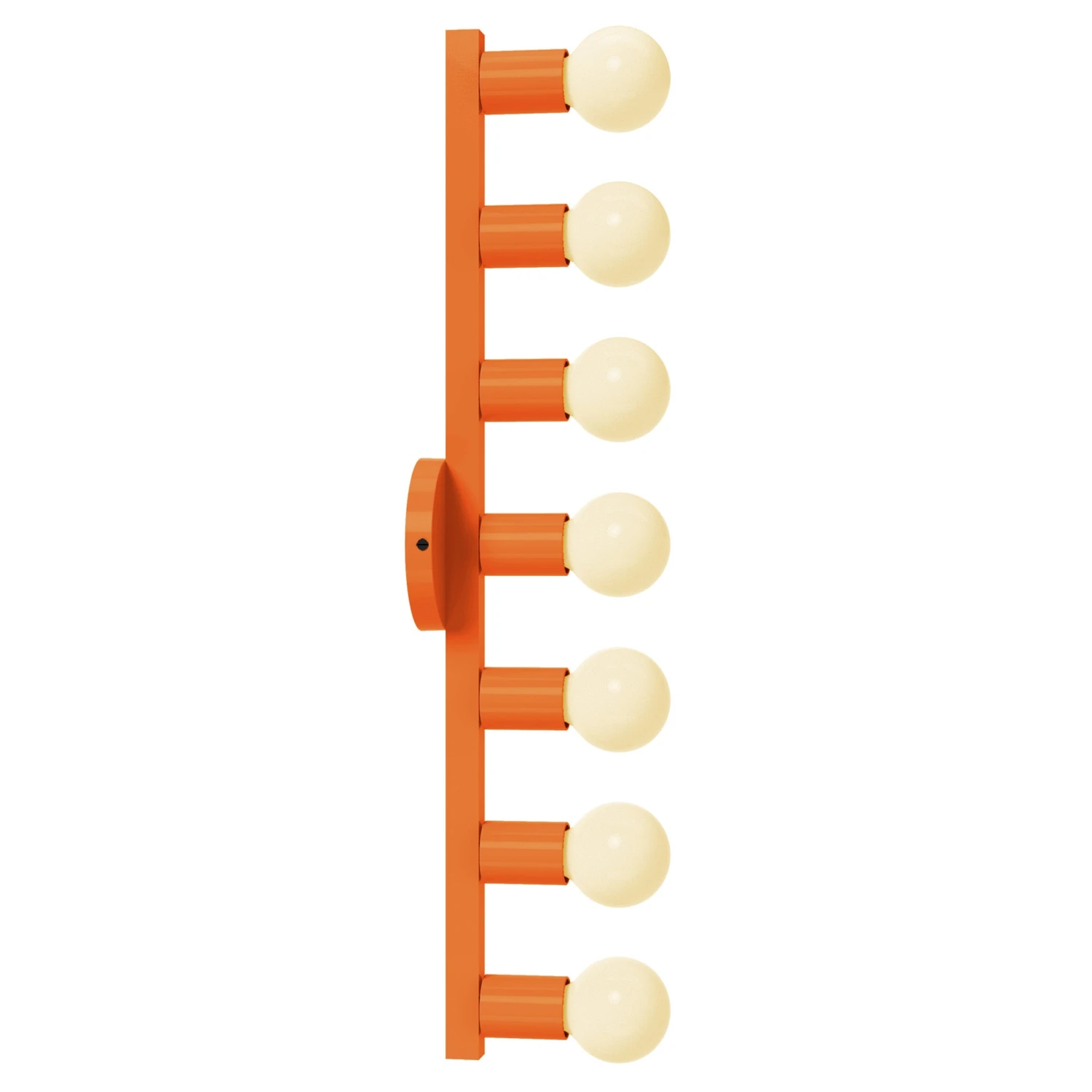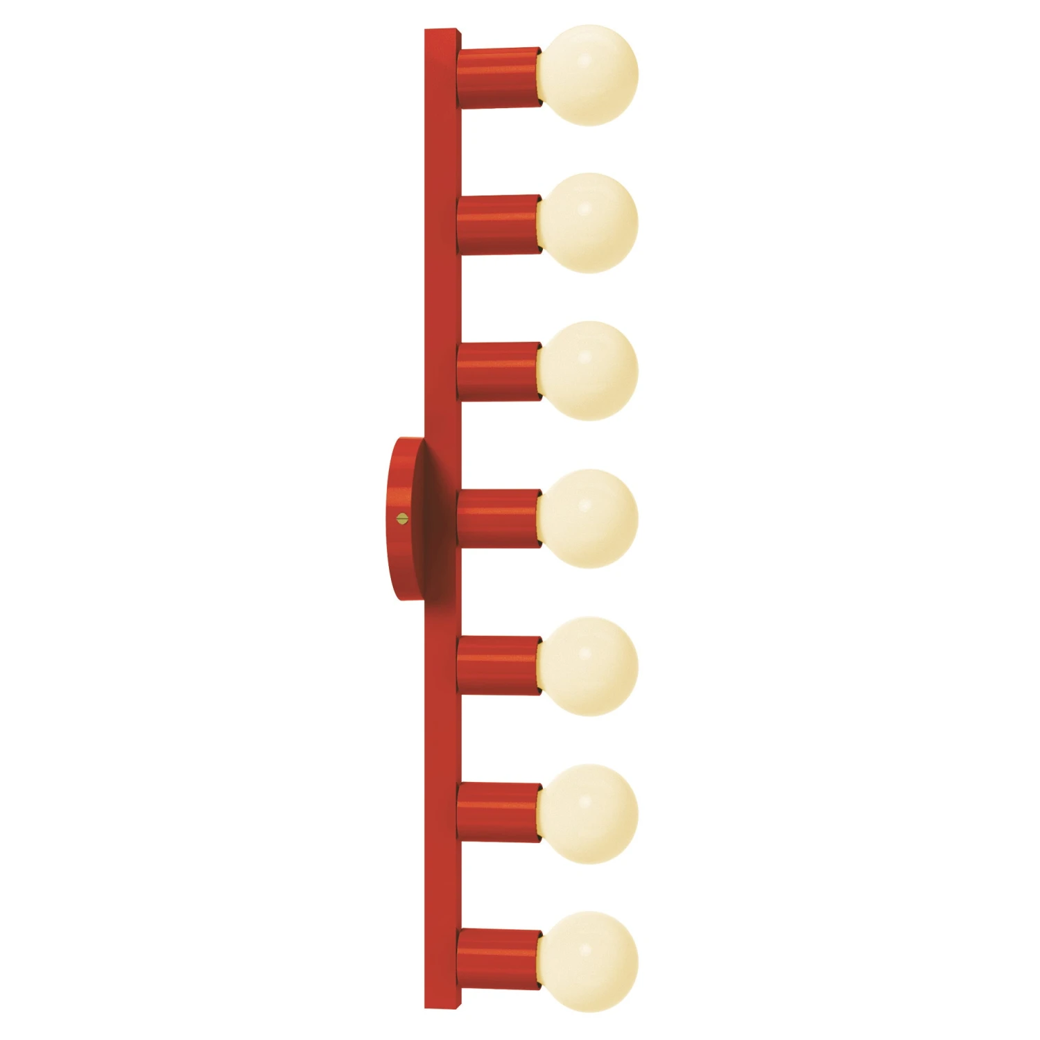 Its 7-bulb arrangement is designed to create a linear column of light that distributes light widely and evenly. The base of the fixture remains minimal while the colorful options lend the fixture to be well-suited to a variety of color schemes.