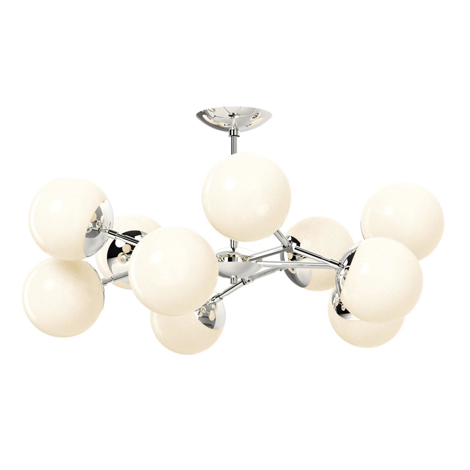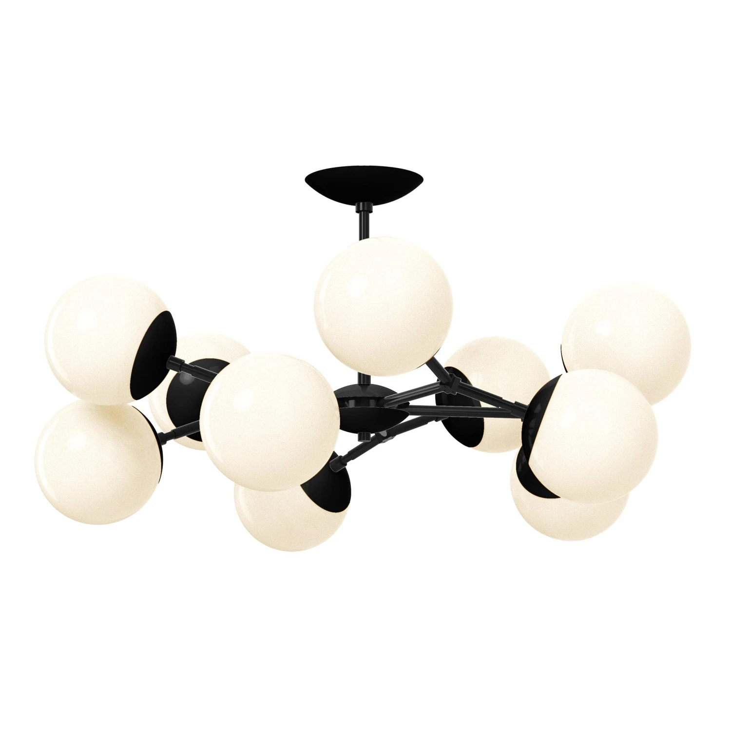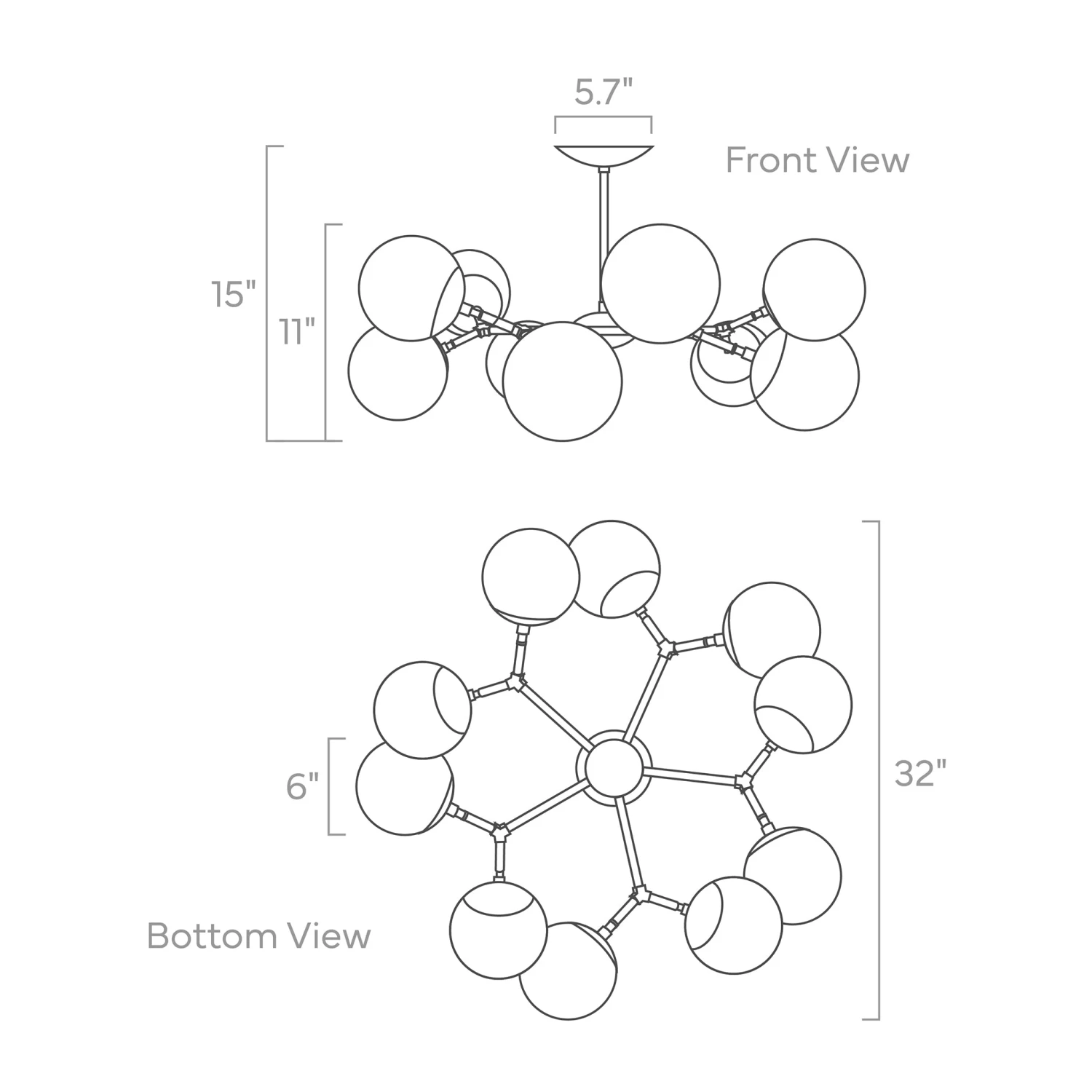 The Crown Globe Flush Mount 32″ is a beautiful set of nested arms splitting into one of 10 globes of light. The perfect lighting for spaces with lower ceilings, the fixture is also great in rooms with 8ft ceilings when a bit of extra headroom is necessary. Want to hang over a table or have higher ceilings? This globe lighting is also available as the Crown Globe Chandelier.