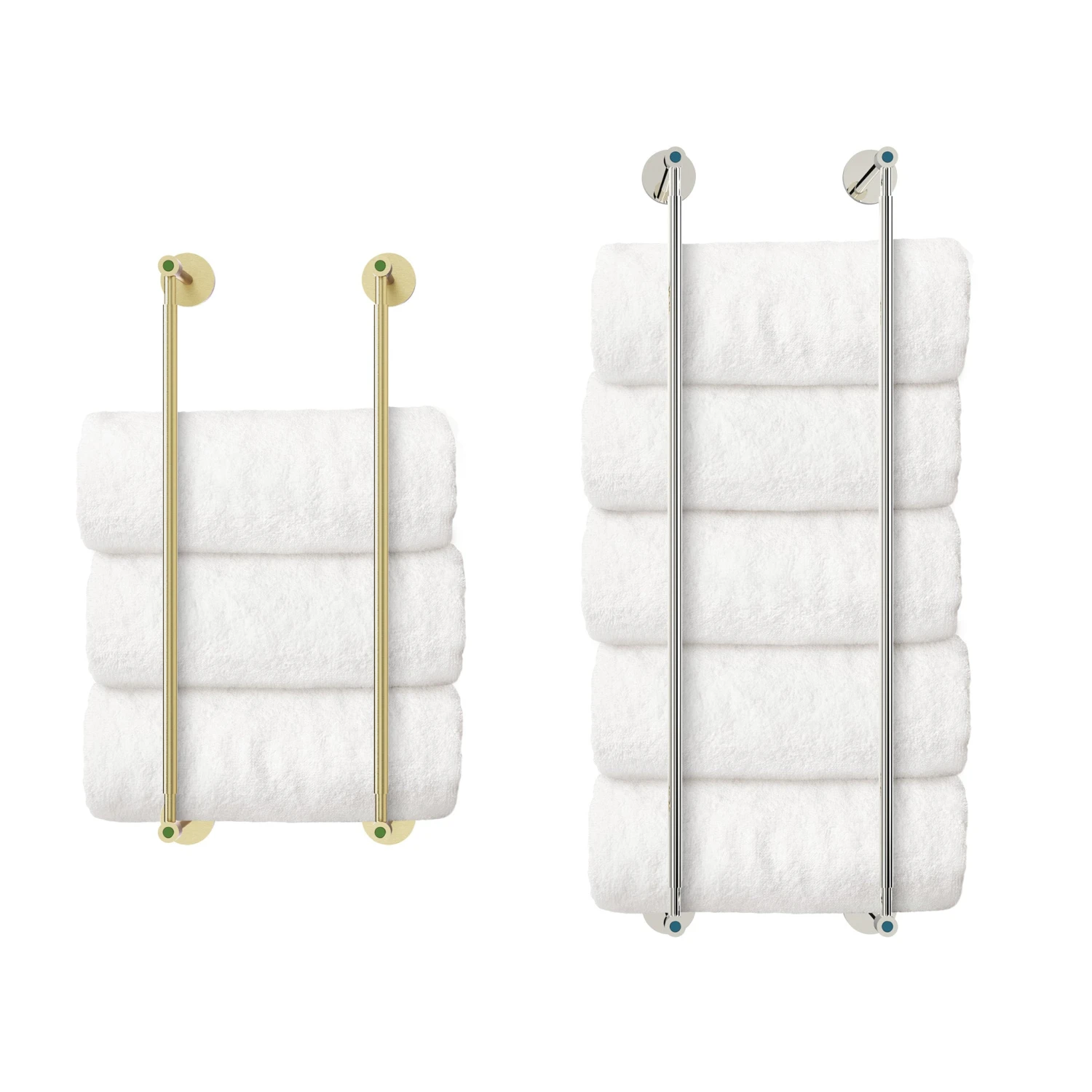 A “head” above the restroom (sic), this modern towel rack with defined edges and clean lines is well-suited to complement or elevate any bathroom. Each rack is crafted from exclusively-designed CNC-machined solid brass and features decorative circular inlays. We did our part designing a tidy, snug storage option for your towels; now you can have fun researching fun ways to roll them.