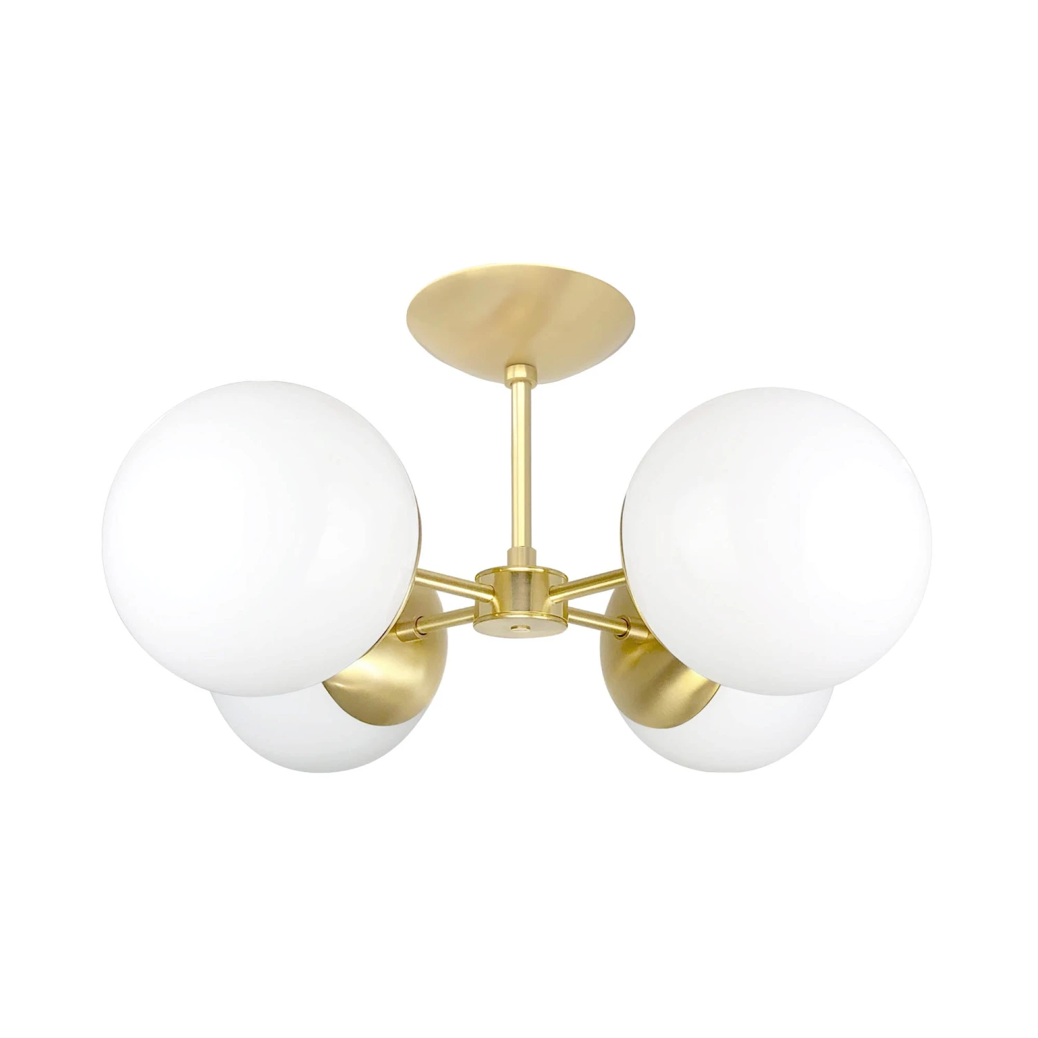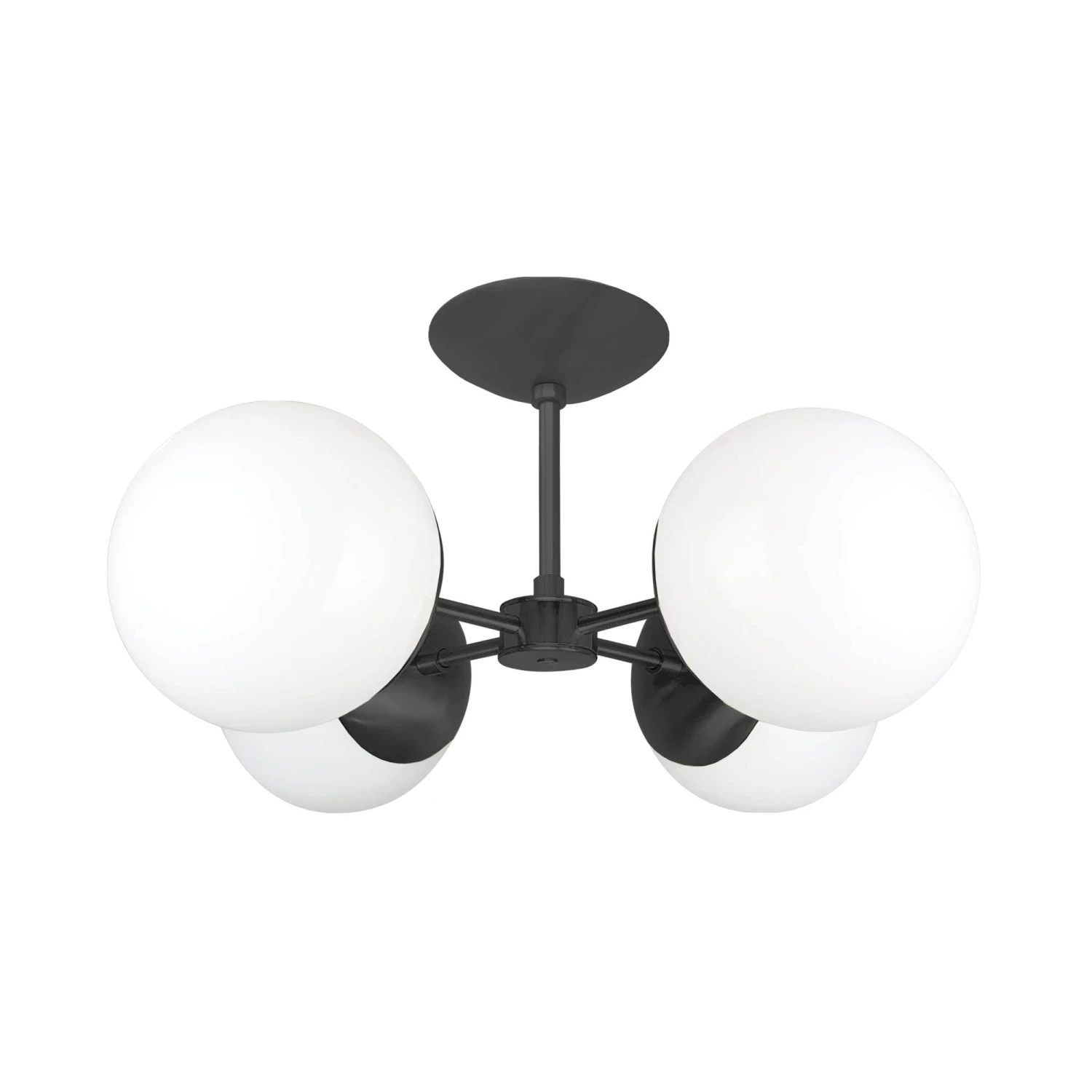 The Orbi Globe Flush Mount is a timeless light fixture named for the orbiting effect created by the hand-blown glass globes floating around its center. The fixture is perfect for rooms with lower ceilings and high-swinging doors.